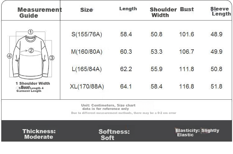 Please note that size chart data is for reference only and may have a measurement error of 0-2cm due to different measurement methods.