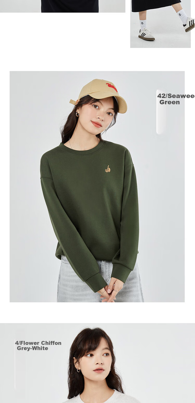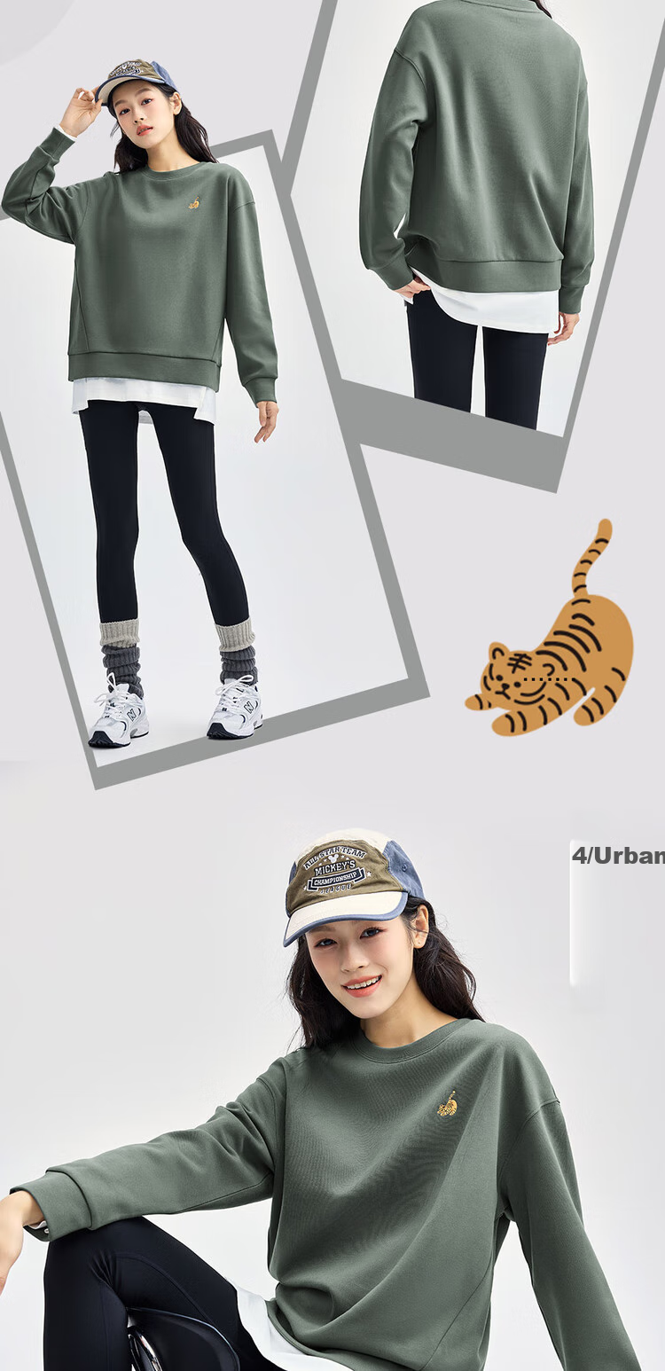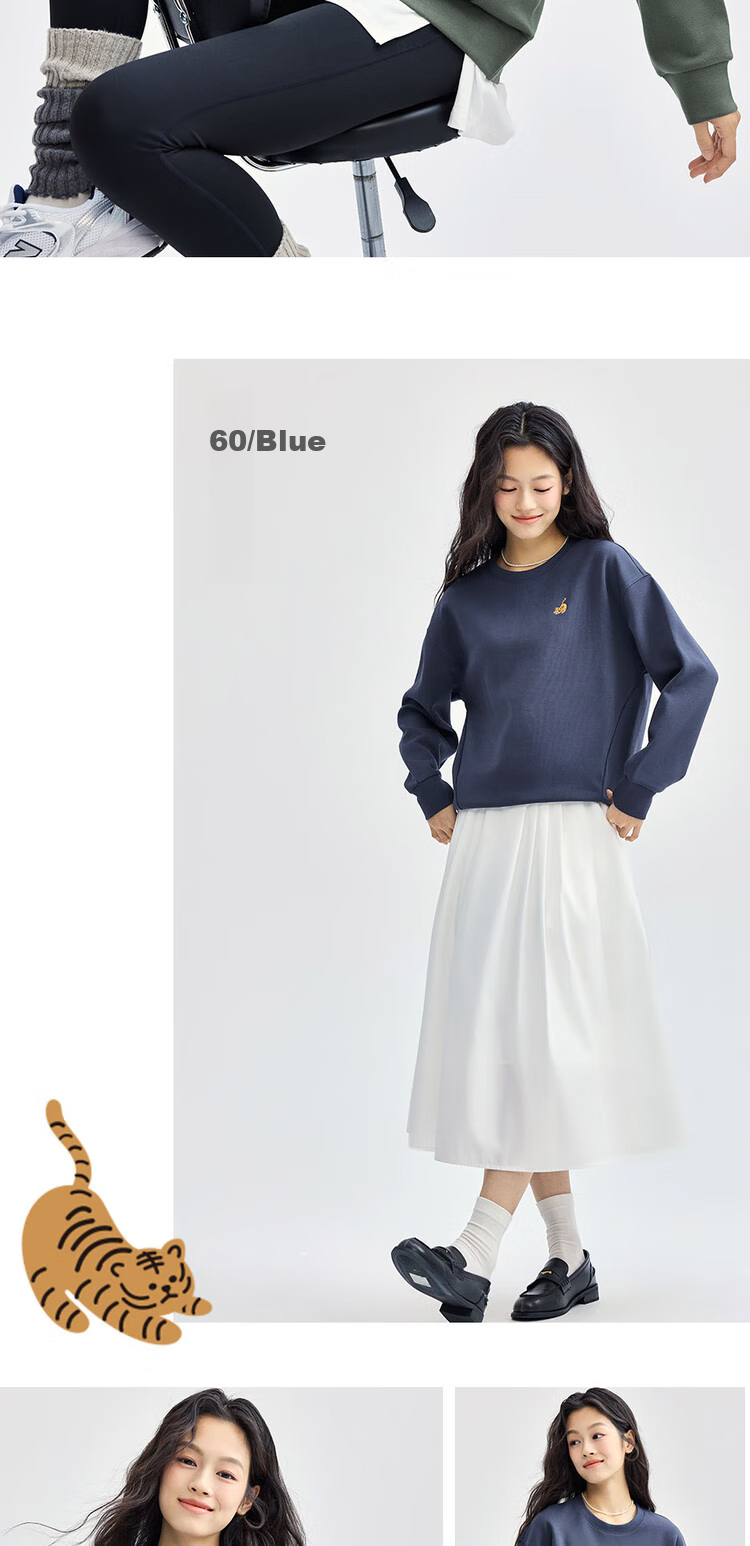 **Features:** Double-sided knitted fabric, loose fit sweatshirt with cute tiger embroidery. Smooth and skin-friendly touch, good hand feel inside and out, resistant to pilling and deformation. Soft and smooth, machine washable and durable, maintains shape and appearance. Stable double-sided weaving, featuring adorable tiger embroidery.